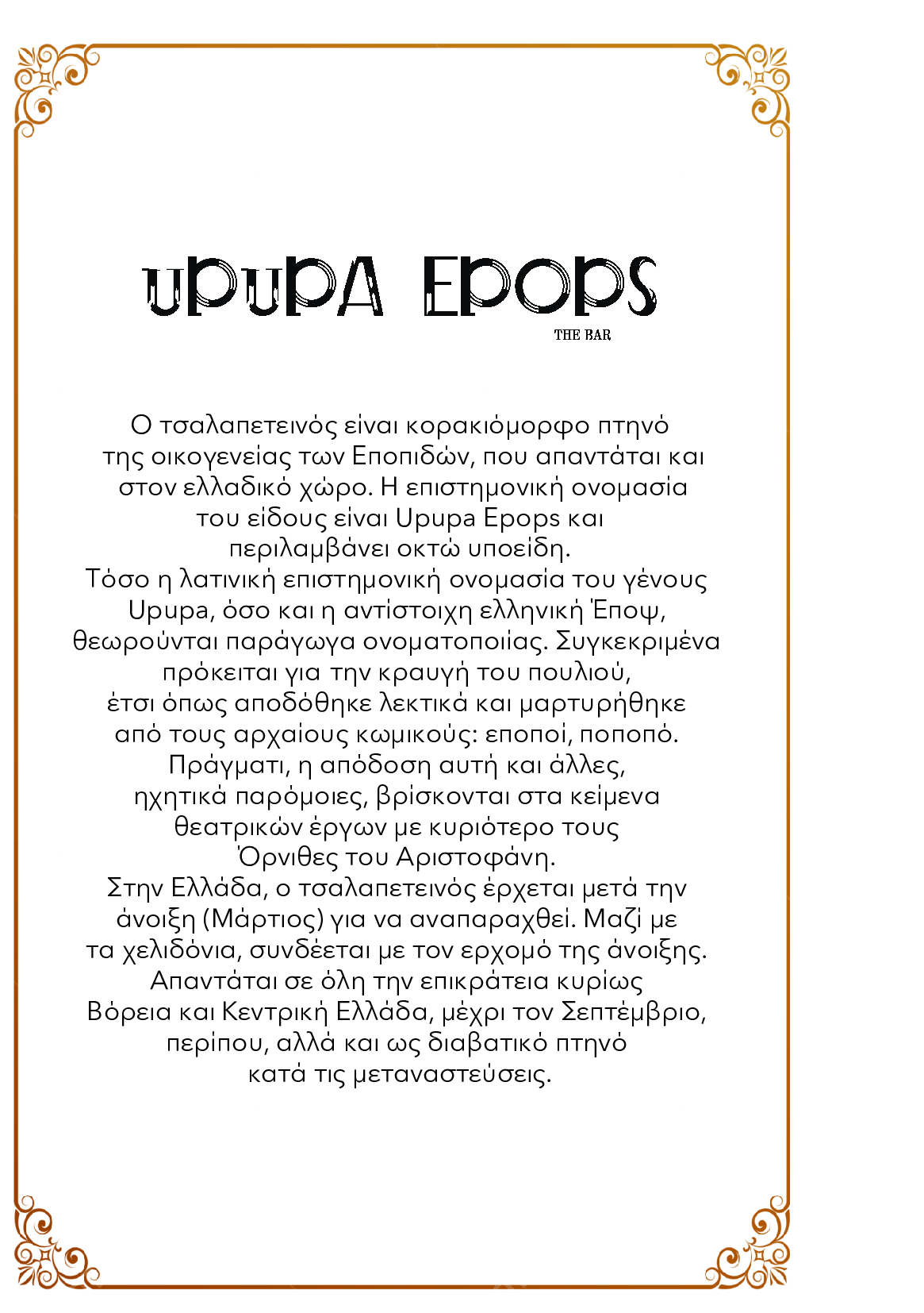 At Upupa Epops, every dish tells a story.