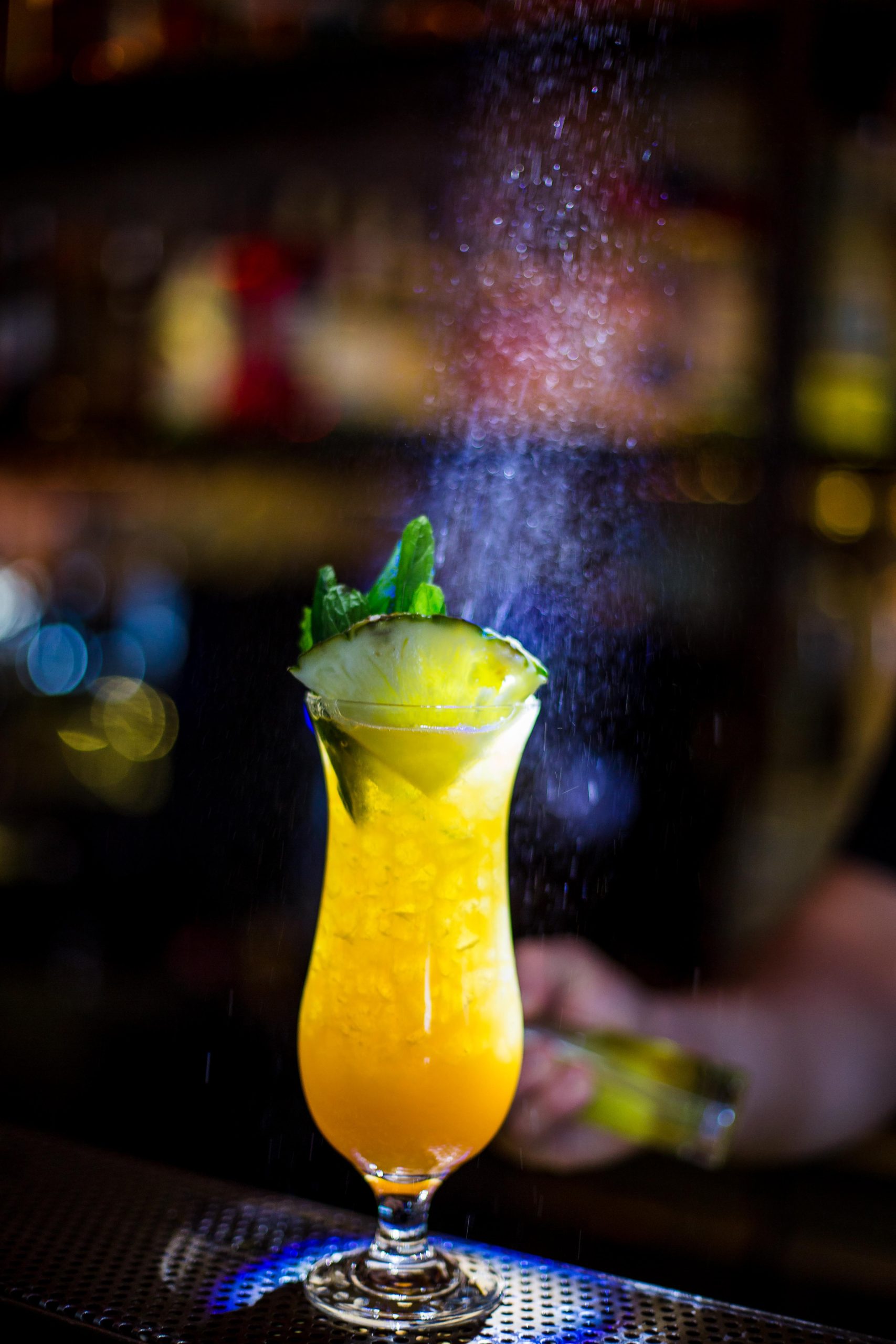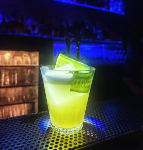 Blend of aged rum, fresh pineapple, lime, ginger, maraschino liqueur, oleo saccharum, homemade falernum, absinthe, bitters.